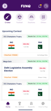 FunQ is a real-money fantasy gaming platform that offers quiz-based contests across topics like sports, elections, stock markets, and more. Compete with others, score points, and win real rewards!